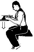 15. Сидя на стуле, сожмите ноги и положите ладони под бедра ближе к коленям. А теперь попробуйте поднять плечи вверх, не сгибая рук и изо всех сил прижимая ладони к нижней стороне бедер (рис.2.22).