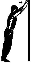 16. Встаньте лицом к стене на расстоянии, примерно, одного шага от нее, поднять руки высоко над головой, упереть их в стену и попытаться отодвинуть ее подальше (рис.2.23).