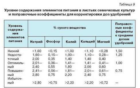 Существуют ли уровни содержания элементов питания в листьях семечковых и поправочные коэффициенты для корректировки доз удобрений?