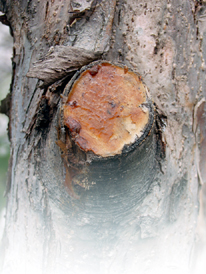 Чтобы не переносить болезни на здоровые ветви, ножи, и секаторы периодически промывают 40 %-ным раствором формалина.