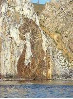 Но поздней змея-дракон вернулся, ее образ отобразился на мраморной поверхности скалы мыса Бурхан, обозначив его святость. Была и фотография этого образа бурого цвета. Одно место силы, связанное со стихией земли, определилось, помеченный красным драконом мыс Бурхан, одна из святынь Азии.