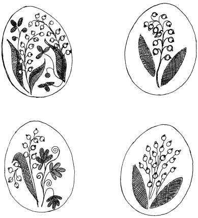 Варианты пасхальных яиц с цветами, листьями и ягодами