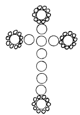 Можно выполнить крест из крупных бусин, окруженных мелким бисером. Хорошо выглядят кресты из жемчужных бусин, окантованных золотым бисером. Колосья пшеницы прекрасно сочетаются с такими крестами.