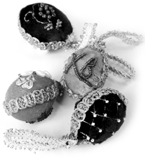 Бусины пришивают по отдельности по нарисованному контуру креста на небольшом расстоянии друг от друга. Крайние бусины окантовывают мелким бисером. Количество бисерин для окантовки рассчитывается в зависимости от величины бусины, а размер бусин определяется размером пасхального яйца.