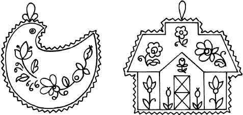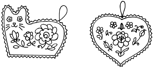 Подберите бисер, по цвету соответствующий цвету ткани, из которой вы будете шить игольницу. Цветы, листья и ягоды вышейте бисером, а стебли и веточки – нитками. Вы можете воспользоваться предложенными рисунками, можете придумать свой узор или расположить рисунок совсем по-другому. Края деталей с вышивками обработайте ножницами «зигзаг».