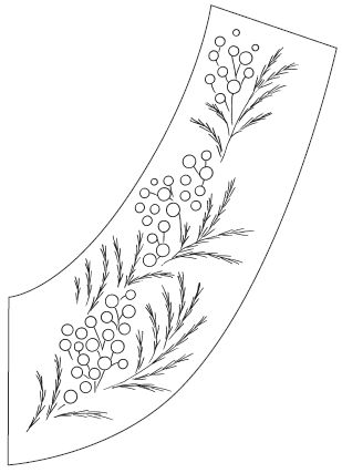 Рассмотрим еще некоторые узоры, которые можно использовать для вышивки на готовой одежде. Если у вас есть джинсовый костюм, то вы можете, например, на кармане и поясе куртки разбросать в произвольной форме веточки незабудок (см. вклейку, фото 36–37). Техника выполнения незабудок описана ранее в разделе «Приемы работы».