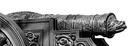 Рис. 1.37а. Старинная пушка, обильно покрытая искусным узором. Сзади ствол украшен головой животного (или дракона) с высунутым языком. Московский Кремль. Фотография 2004 года.