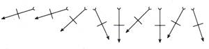 В графических расписаниях количество информационных измерений уменьшается, если измерять расстояние по самим направляющим, по самим линиям следования. Трехмерная реальность превращается в тонкую линию на бумаге, и это очень напоминает маршрутную карту. Вот своеобразный путеводитель из Лондона в Дувр, через море, а потом из Кале в Париж. Стрелка указывает направление на каждом участке пути по типу компаса.