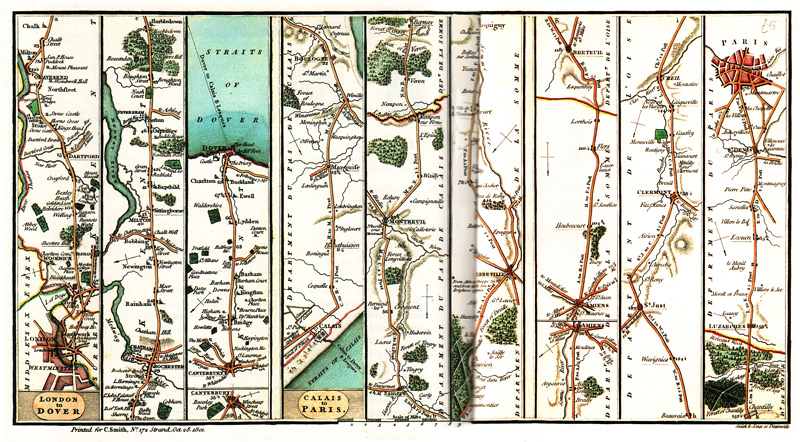 Чарльз Смит “Новый план дороги из Лондона в Дувр и из Кале в Париж”, Лондон, 1801.