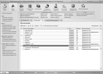Если на данном этапе работы мы перейдем к списку элементов справочника Организации , мы увидим, что в нём уже появилась запись об ООО «Столяр», рис. 3.10.