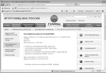 Здесь нас, рис. 3.14., интересует одна из ссылок на скачивание базы данных классификатора КЛАДР (BASE.arj). Размер архива – около 37 Мб.