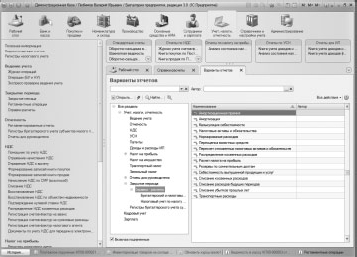 При щелчке по ссылке Справки-расчеты открывается окно, где собраны ссылки для доступа к набору справок-расчетов. В этом окне есть ссылка Все отчеты , она открывает окно Варианты отчетов , рис. 4.41. Здесь можно найти различные отчеты (и справки-расчеты в том числе), они удобно сгруппированы, для вызова окна отчета достаточно сделать двойной щелчок по нужному отчету.