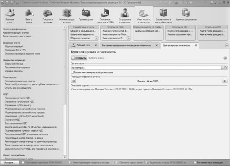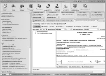 После завершения работы над отчетом, его нужно сохранить, нажав на кнопку Сохранить . Он появится в списке отчетов в окне Регламентированная и финансовая отчетность и к нему можно будет вернуться позже. Возможность сохранять подобные отчеты весьма полезна – на составление и проверку отчетов, даже учитывая возможности автоматизации, может уходить достаточно много времени.