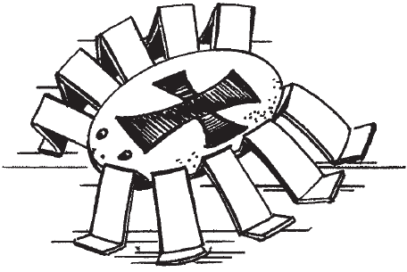 Из листа картона вырезать овал. Затем разделить его на 5 частей и в центральной части нарисовать овал. Средняя часть будет туловище паука, остальные части – это лапки. Надрезать картон полосками до туловища. Затем каждую лапку согнуть пополам – в размеченной линии и возле туловища. В последнюю очередь нарисовать фломастерами крест на спинке паука и его глаза (рис. 17).