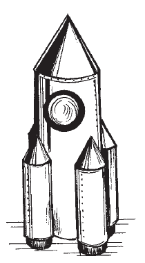 Из цветной бумаги вырезать небольшие круги и наклеить их на ракету в виде иллюминаторов (рис. 20).