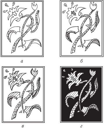 Рисунок 10 а – г. Выполнение мозаики с многоцветным фоном