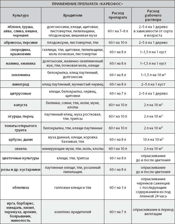 Надежный, проверенный временем препарат (пакет 60 и 30 г), большой перечень культур, на которых разрешено применение препарата, и широкий спектр вредителей, против которых препарат эффективно применяется.