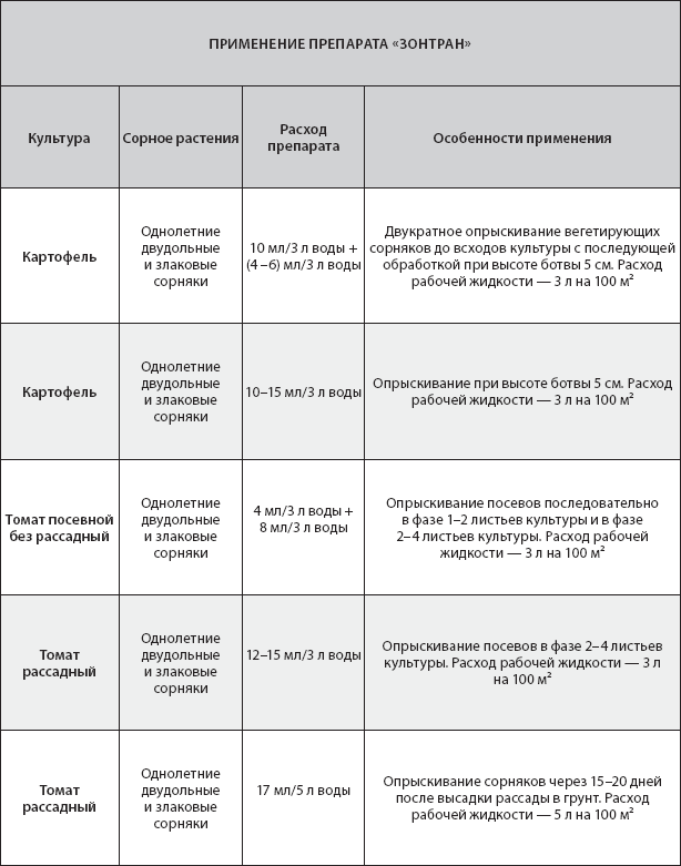 Эффективен для борьбы с сорняками на посадках картофеля и томатов, экономно расходуется. Блокирует прорастание сорняков, улучшает урожайность.