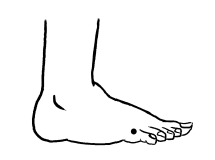 Расположена в верхней части стопы, на 2,5 см выше впадины между четвертым и пятым пальцами (рис. 23). Помогает при артритных болях, при полиартрите, при головных болях, болях в боку, отеках и ишиасе.