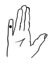 Массаж активных точек помогает и при нарушении кровоснабжения тканей. Чаще всего от недостаточного кровоснабжения страдают конечности, возникает ощущение онемения, холода, а также судороги. В этих случаях рекомендуют массировать точку 9MC , расположенную на первой фаланге среднего пальца, на его боковой поверхности, обращенной к большому пальцу (рис. 33).