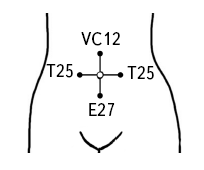 ♦ гармонизирующую точку T25 (понос), которая находится на расстоянии двух пальцев от пупка по обе стороны;