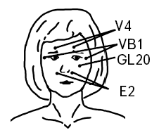 Зона 6. Расположена у виска, у окончания брови. Показания: при заболеваниях глаз.