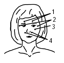 Зона 7. Расположена у начала брови. Показания: при слезотечении, воспалении пазух носа.