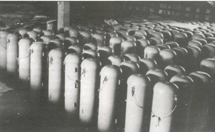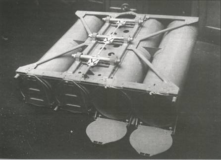 Подобные конструкции создавались и для других самолетов. Для бомбардировщика СБ предназначалась кассета АК-1 завода № 145. Она представляла из себя просто широкую трубу на 30 ампул по 1,5 л. Таких труб в бомбоотсеке устанавливали шесть — по числу вертикальных бомбодержателей ДЕР-34. Всего получалось 180 ампул. Сброс проводился от штатного электробомбосбрасывателя ЭСБР-3 или запасного механического (тросового) АСБР-3. Конструкция кассеты получилась довольно легкой — всего 6 кг. В загруженном виде она весила 51 кг. СБ с шестью такими кассетами нес 306 кг, то есть примерно половину нормальной нагрузки. Значит, грузоподъемность самолета использовалась далеко не полностью.