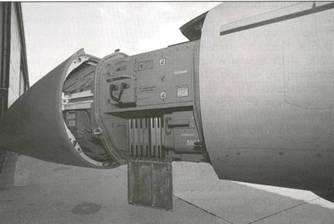 Дальнейшее повышение боевой эффективности при действиях в темное и светлое время суток намечено достигнуть за счет установки в передней части 1800-литрового подвесного топливного бака инфракрасной обзороно-следящей системы IRST (I nf га Red Search-and- Track), способной обнаруживать и сопровождать воздушные цели в пассивном режиме без включения РЛС.