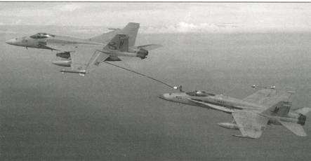 F/A-18E дозаправляет в полете F/A-18C "Хорнет"