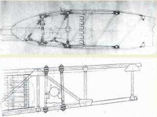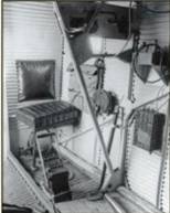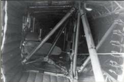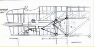 Чертеж размещения 76-мм полковой пушки и укладки со снарядами в крыле (вид сбоку и сзади). Контуром показано положение артиллериста