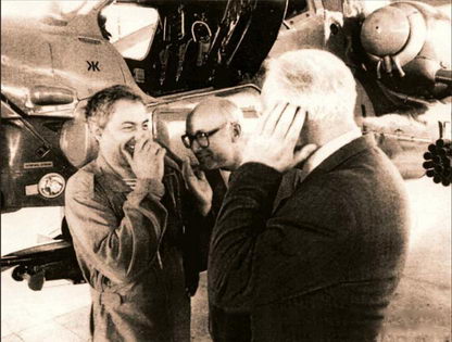 Сейчас у Бориса Яковлевича Демчака чуть больше времени на любимые занятия: чтение (он вообще человек очень начитанный и эрудированный) и общение. Еще не так давно по праздникам и особым случаям Борис Яковлевич любил выпить с друзьями бокал-другой шампанского. Надеемся, что и на этот раз он нам не откажет. Наполним бокалы шампанским и выпьем за здоровье летчика-испытателя Бориса Демчака. За его честную жизнь, за сотни облетанных им машин, за летчиков, которые считают его своим учителем! С юбилеем Вас, Борис Яковлевич!