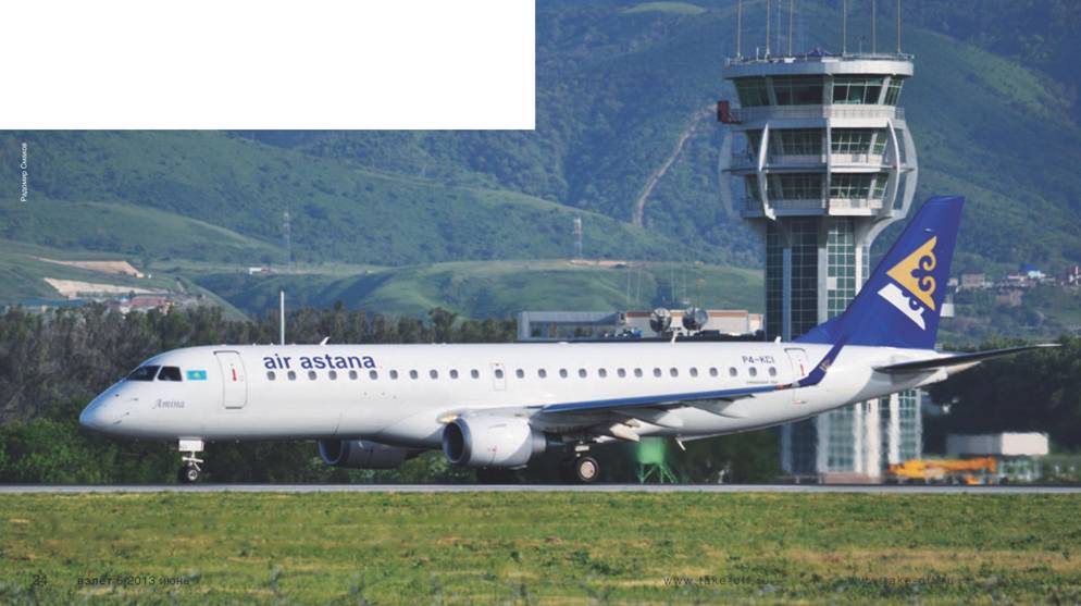 Казахстанская Air Astana сегодня эксплуатирует уже семь E190LR. Все они приходят в республику непосредственно с завода Embraer и носят регистрацию Арубы. На снимке — самый «свежий» казахстанский «эмбраер», поступивший в авиакомпанию в марте этого года
