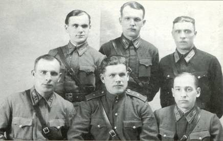 Командование 812-го ИАП. В первом ряду слева на право: Т.Пасынок, А.Еремин, СЛепилин. Во втором ряду: Д.Николанков, И.Батычко, Ф.Свеженцев.