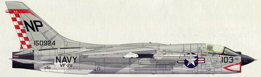 F-8E (сер. № 150924, борт. NP103) командира VF-211 (авианосец «Хэнкок») коммандера Гарольда Мэрра, на котором он 12 июня 1966 г. одержал две победы.