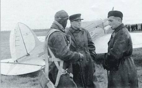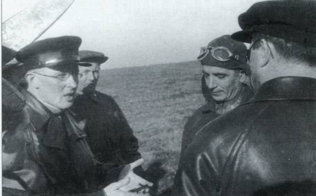 Гродзянский (в летном обмундировании), Агитов (в очках), Грибовский (с папиросой) на фоне Г-23. Хорошо видно, что вырез под переднюю кабину заделан, поскольку там установлен дополнительный бак.