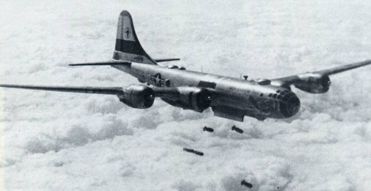 В-29 (сер. № 44-62102) капитана Лео Моффэтга из состава 92-й бомбардировочной авиагруппы над Японским морем.