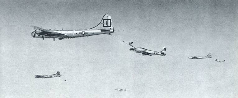 КВ-29 из состава 91-й эскадрильи танкеров заправляют «Тандерджеты» из 27-го авиакрыла истребителей сопровождения.
