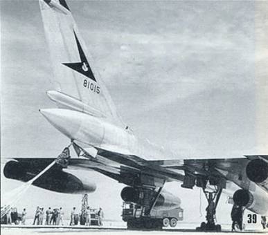 Но угроза, создаваемая дозвуковыми тяжелыми бомбардировщиками и самолетами- ракетоносцами, казалась американским военным руководителям уже недостаточной. С 1953 г. началось государственное финансирование программы сверхзвукового среднего стратегического бомбардировщика В-58 «Хастлер», а в следующем году — сверхзвукового тяжелого стратегического бомбардировщика В-70 «Валькирия». И если последний так и остался всего лишь «пугалом» для советского военно-промышленного комплекса, то «Хастлер» уже в 1959 г. стал поступать на вооружение эскадрилий Стратегического Авиационного Командования ВВС США.