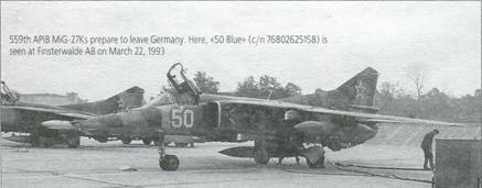 Самолеты 559-го АПИБ собираются покидать Германию. Аэродром финстервальде 22 марта 1993 г. (на снимке — МиГ-27К борт 50-синий, зав. № 76802625158)