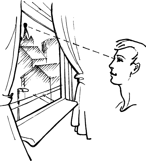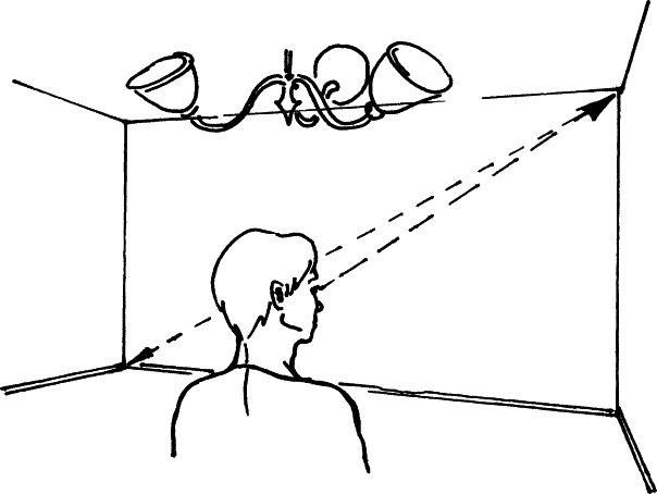 Во время выполнения всех упражнений на зрение старайтесь превращать их в процесс поиска объектов, а не в процесс разглядывания. Чтобы развить в себе эту привычку, одна женщина придумала себе упражнение, которое она делала на работе. Она прикрепила маленькую звездочку из серебристой фольги на темную дверную коробку напротив своего рабочего стола. На первых порах она ничего не видела, но она знала, на каком расстоянии от верха двери следует ее искать, и потому ежедневно занималась своеобразным обследованием двери. Однажды неожиданно звездочка блеснула, и, несмотря на ее малые размеры, женщина ясно ее увидела.