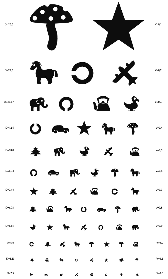 Продолжайте спускаться вниз по таблице, вспоминая каждую строчку до того, как обратите свой взгляд на таблицу. Если вы будете делать это расслабленно, не пытаясь напрячь зрение, то вы, возможно, одолеете половину строк таблицы.