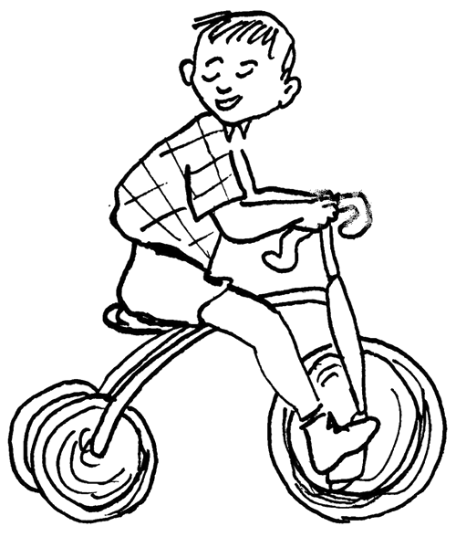 По лестнице съезжал на велосипеде Коля. Он гнал прямо по ступенькам, только лестница тряслась и велосипед грохотал на спуске.