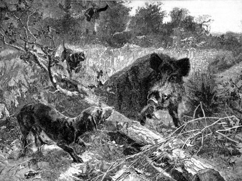 Охота была широко распространена, и использовались различные способы ее проведения. Характерно, что вельможи держали специальные многочисленные службы при своих дворах и людей, которых обучали охотничьему делу. При этих службах содержали и охотничьих собак, вели их дрессировку, а также полевую подготовку. Конечно же, в то время самой распространенной оставалась охота на зверя. Она делилась на охоту на оленей и кабанов, хищных зверей и мелкую дичь. Оленей и кабанов чаще всего преследовали верхом с собаками. Загоняли в заранее расставленные сети и добивали копьями или мечами. Или же преследовали собаками, которые принуждали зверя остановиться, после чего охотники добывали его. Случалось, что собаки загоняли добычу на скалы, в заросли или воду. Это во многом облегчало добычу трофея. Хищных зверей, и волков в первую очередь, добывали ловушками, ловчими ямами, часто с применением приманки. Мелких зверей (кроликов, зайцев) стреляли на полях из луков и арбалетов, а также добывали ловушками и петлями. При охоте на пернатую дичь чаще всего применяли сети. На полевой охоте по перу это был террас (накидная сеть). С ним охотились в сопровождении собак, которые отыскивали куропаток и перепелов при помощи чутья и ложились перед найденной дичью. Охотники, обычно двое, покрывали собаку и птиц одной сетью. Стрельба же пернатых из лука или арбалета влет требовала от охотника больших навыков. По этой причине чаще это оружие применяли для добычи сидячей птицы. Это же относилось к охоте на водоплавающую дичь: уток и гусей.