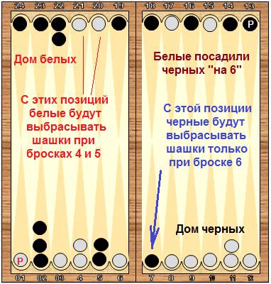 Шашки соперника выстраиваются в один пункт в доме. Это позже приведет к большим потерям в случае бросков 5 и 4. (См. «зона потерь очков»);
