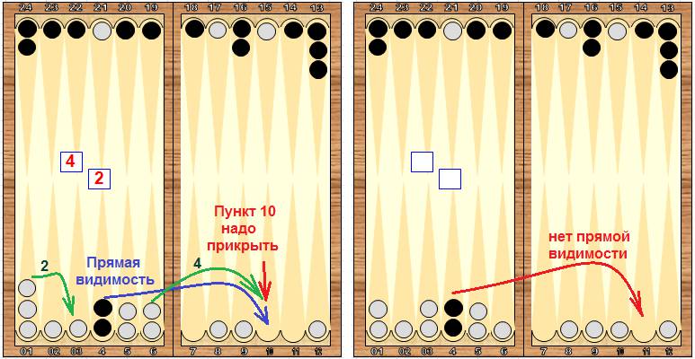 Белым выпало 4:2. Если правильно сыграть, прямую видимость можно закрыть.