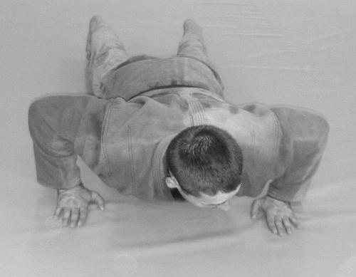 2. Упасть вперед на руки, выполнив самостраховку при падении вперед. При падении голова должна быть повернута в правую или левую сторону. Корпус прогнут в спине. После падения выполнить 2—3 раскачивания с прогнутой спиной. При падении недопустимо приземление на колени – фото 12– 14.