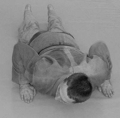 Упражнение первое. Отработка техники базовых навыков при падении на спину (выполняется 8—10 раз).