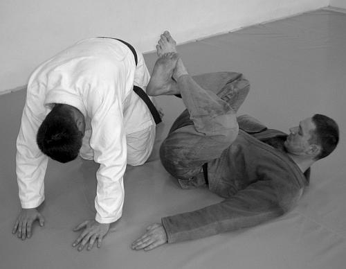 Упражнение первое. Отработка базовых навыков при падении на спину. Отрабатывается в парах (выполняется 8—10 раз).