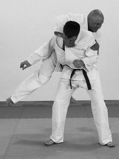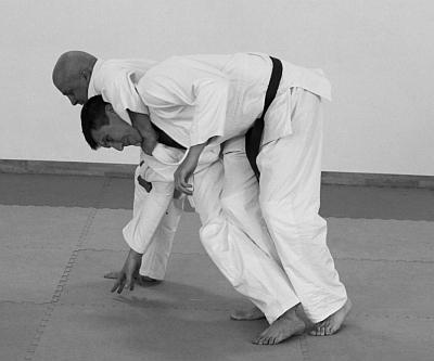Например категорически не рекомендуется выполнять захваты туловища с руками и без, пальцами в переплет. Дело в том, что атакующий рискует при падении сломать пальцы самому себе.